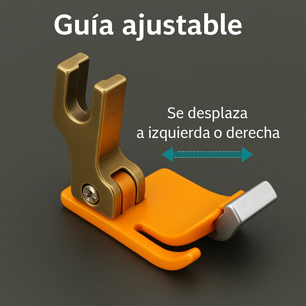 ¿Cansada de dobladillos desiguales y pasar horas midiendo para lograr el ancho perfecto? El problema no son tus habilidades, sino tus herramientas. Nuestro prensatela con guiador ajustable se adapta instantáneamente a cualquier medida, logrando dobladillos perfectos.